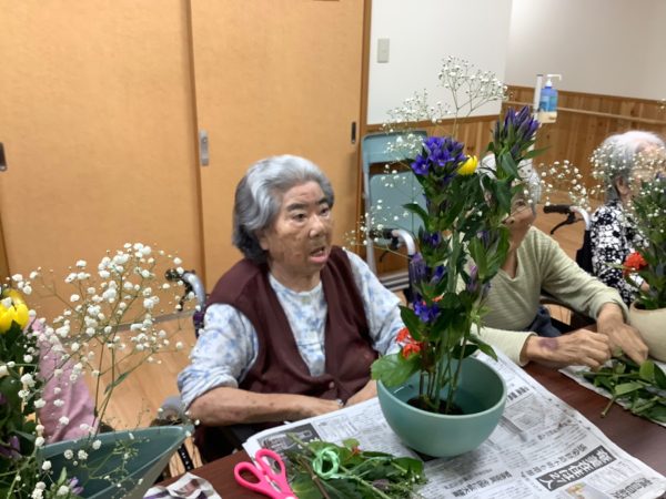 逆さまに活ける斬新な(*☻-☻*)利用者様もいて、笑いあり